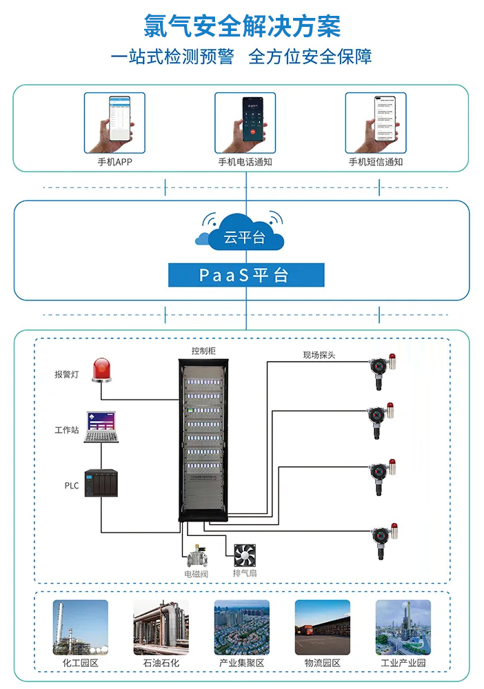 通過在廠區(qū)安裝氯氣探測器及氣體報警控制器,可24小時不間斷監(jiān)測氯氣泄漏濃度,防患于未然。聲光報警